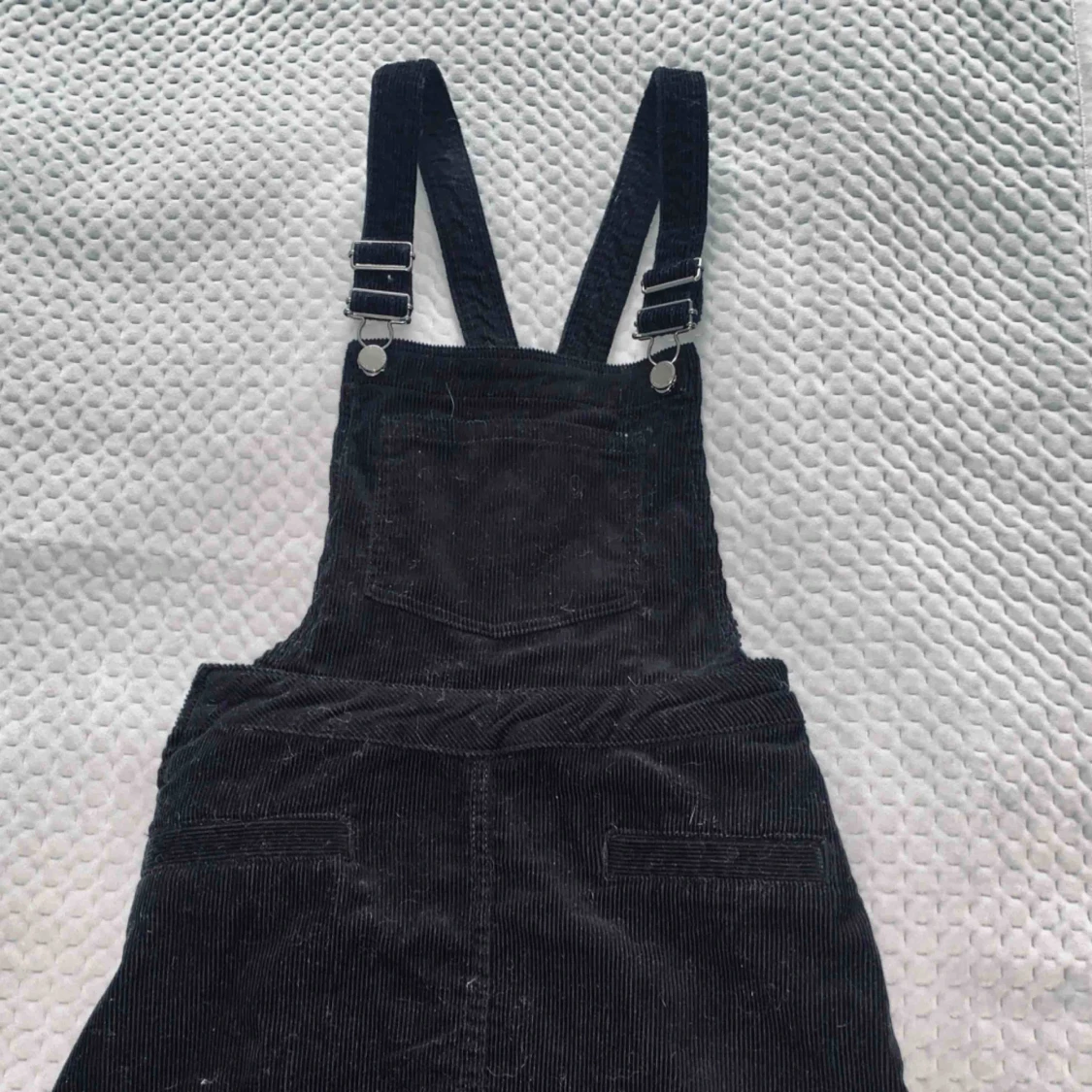 Superfin svart hängselklänning i manchestertyg. Aldrig använd.