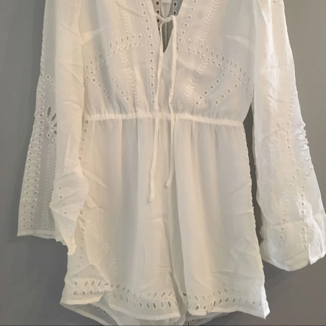 Jumpsuit med spets. Underdelen är fodrad. Dragkedja bak.
