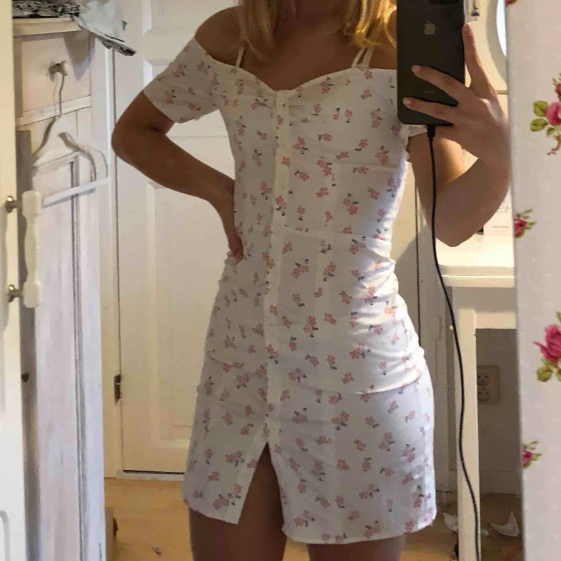 Jättesöt klänning från h&m. Tyvärr aldrig använd då den är för liten för mig. Mönster med rosa blommor och stängs med knappar på framsidan. Frakt tillkommer. Kolla gärna in min profil för mer💕