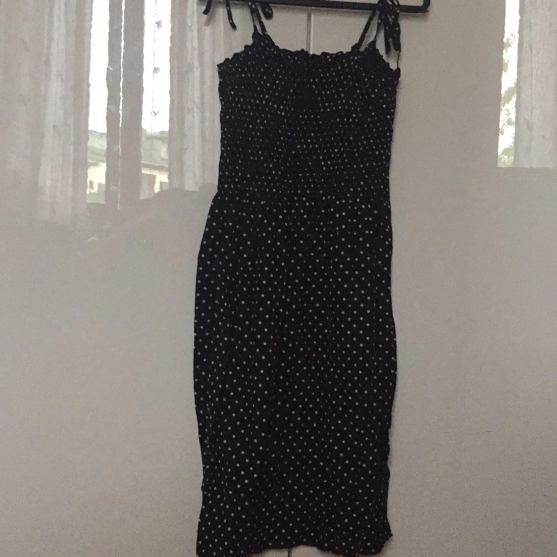 Svart klänning med vita små prickar från h&m. Säljes pga aldrig används✨