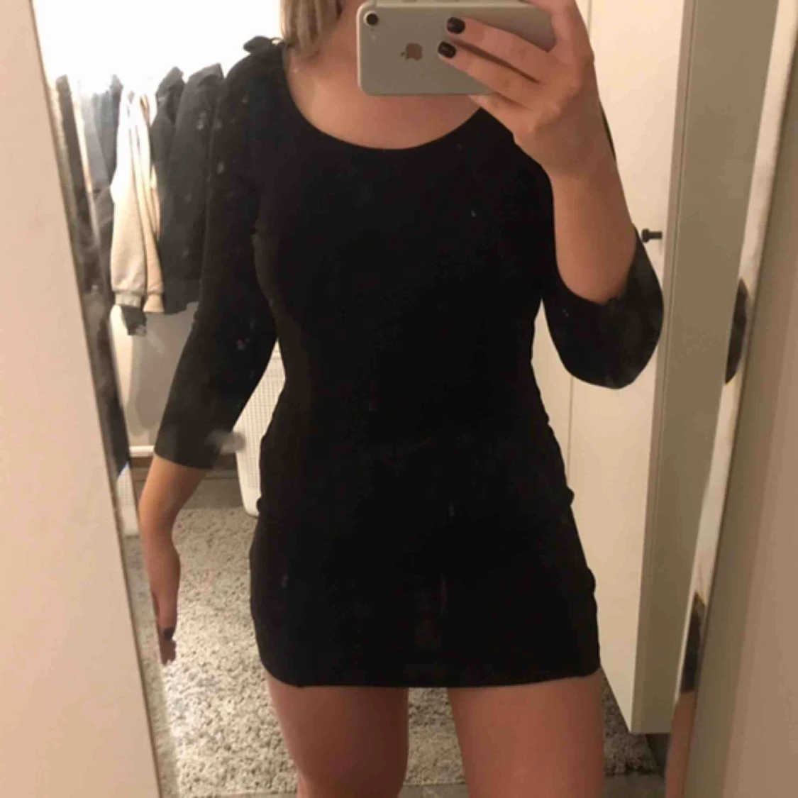 Vanlig svart klänning, super fin, tyget på sidorna gör att den blir väldigt figur vänlig, för liten tyvärr, dragkedja i nacke🤍 50kr