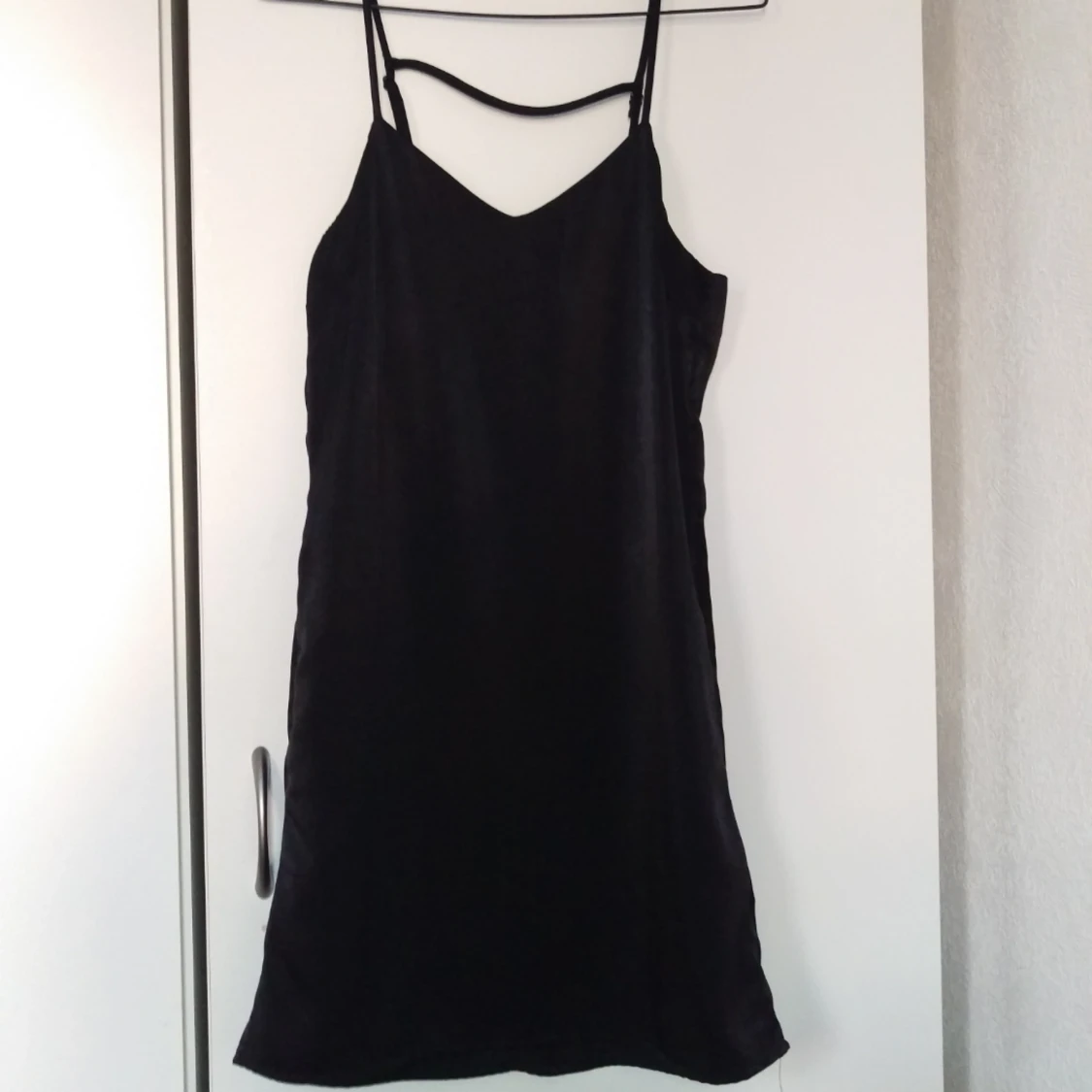 Kort klänning i glansigt satinmaterial, storlek 36. Aldrig använd. Frakt 20:-