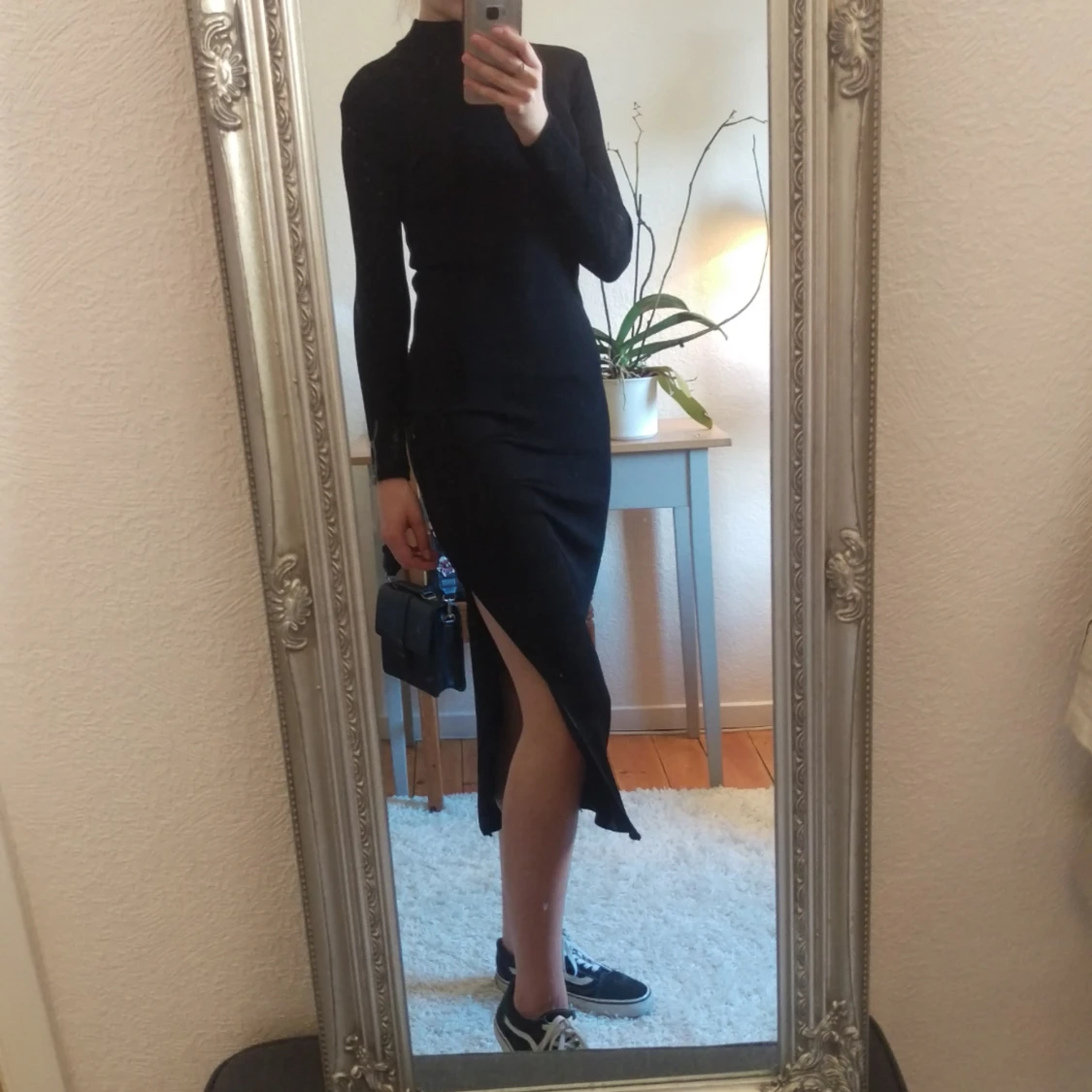 Tight klänning i tjockt strechmaterial, dragkedjor på båda sidor som går halvvägs upp på låret. Storlek 36. Använd ett fåtal gånger. Frakt 45:-