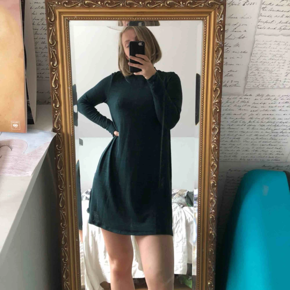 Mörkgrön långärmad klänning med halvpolo. Väldigt mjuk och stretchig:)