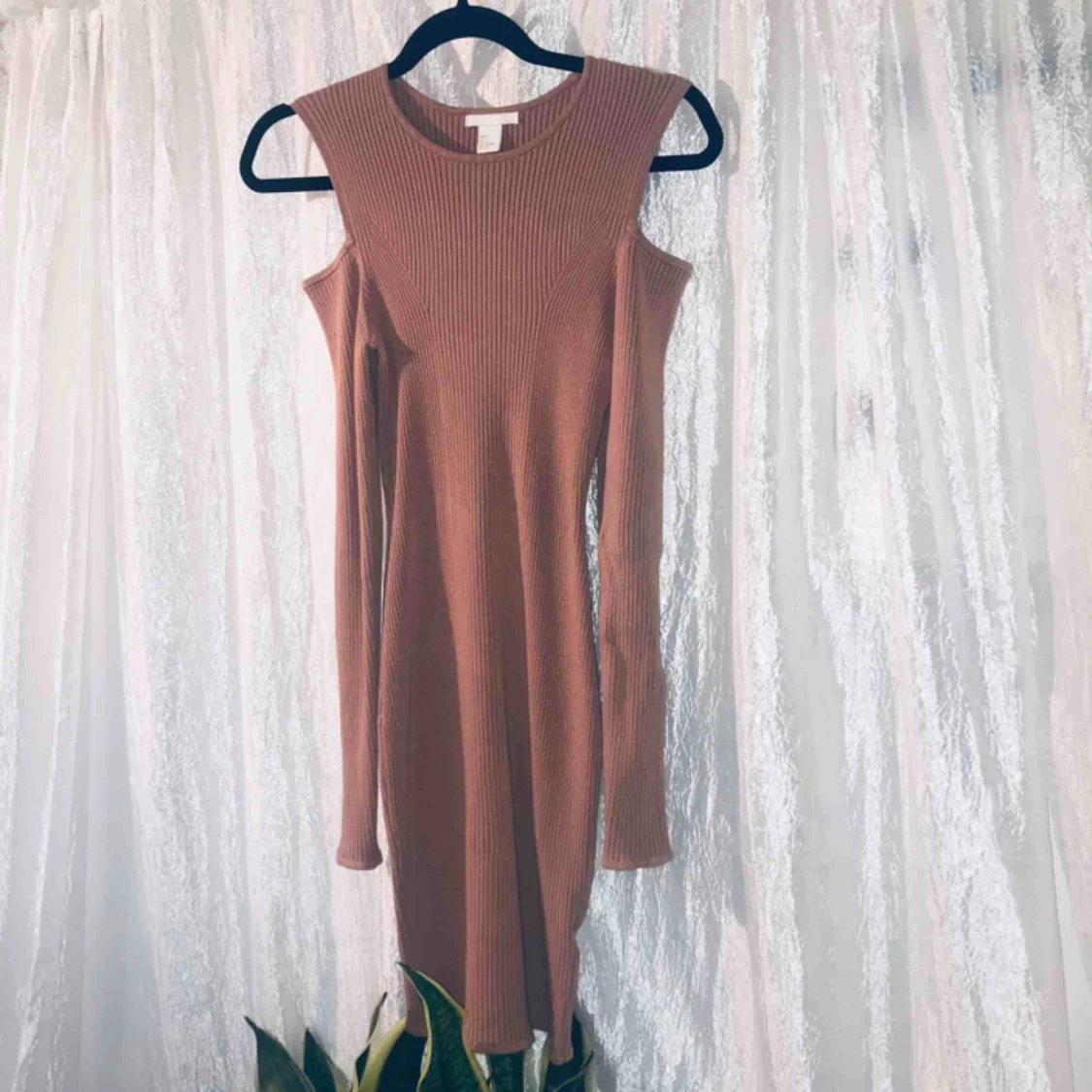 Lyxigt material klänning med öppna axlar, ljusrosa använd några få gånger