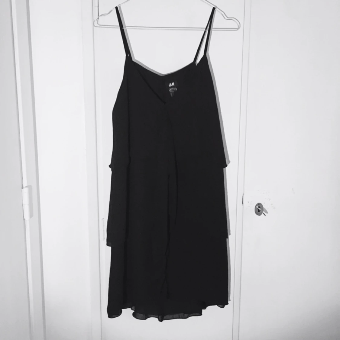 Svart klänning med volang fr H&M. Använd ett fåtal gånger. Fin som den är till fest, eller med t-shirt under till vardags.