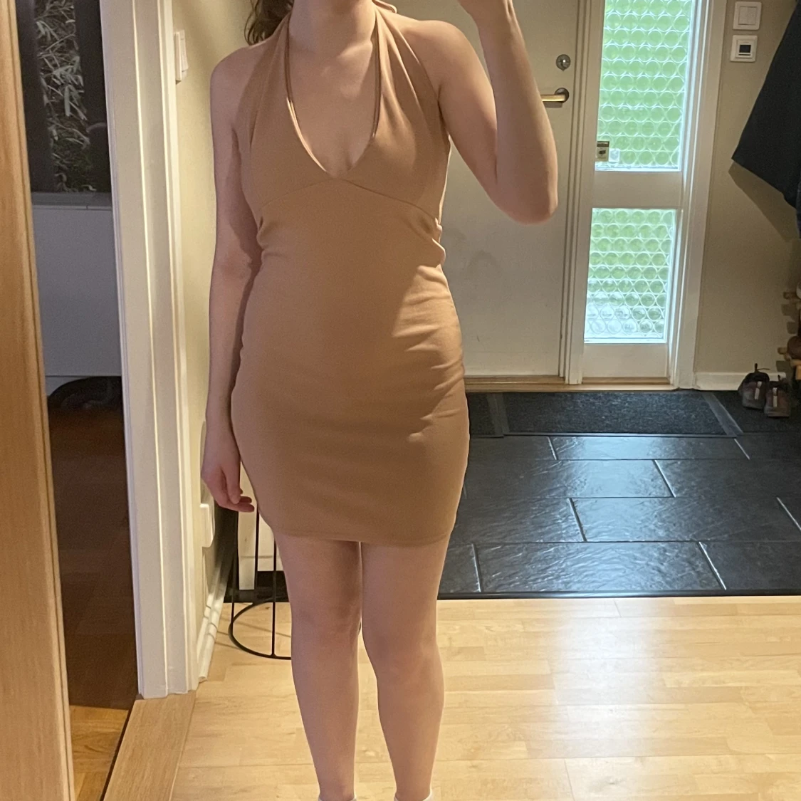 En jättefin beige/rosa halterneck klänning som jag köpt här på plick för cirka 1 år sedan. Aldrig använd💓