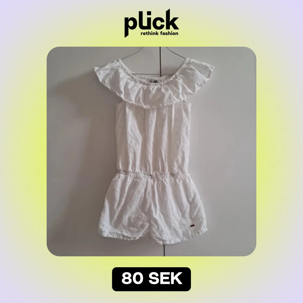Kort jumpsuit i spets, off shoulder (kan bäras som krage) från Kappahls kollektion "Hampton Republic" // Små skavanker i form av: missfärgning vid armen, liten fläck (syns knappt) samt några lösa trådar, se bild 3 // Skicka pm för mer info/samtal
