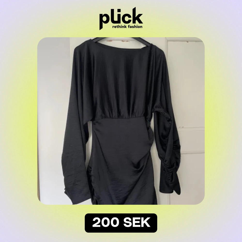 Otroligt fin klänning i svart tjockare silke. Sitter tightare nedtill och lösare runt bysten. Passar bra för stl S/36