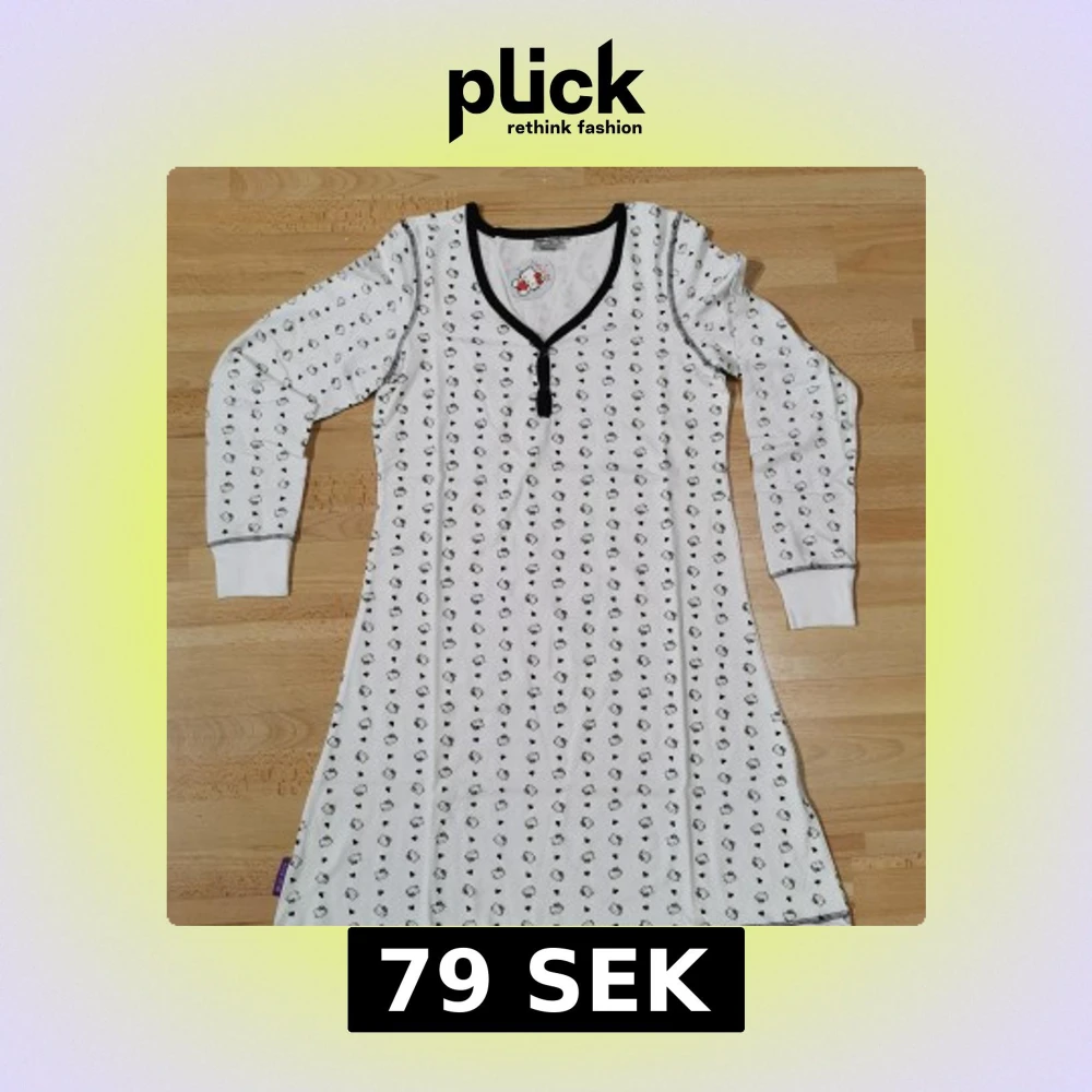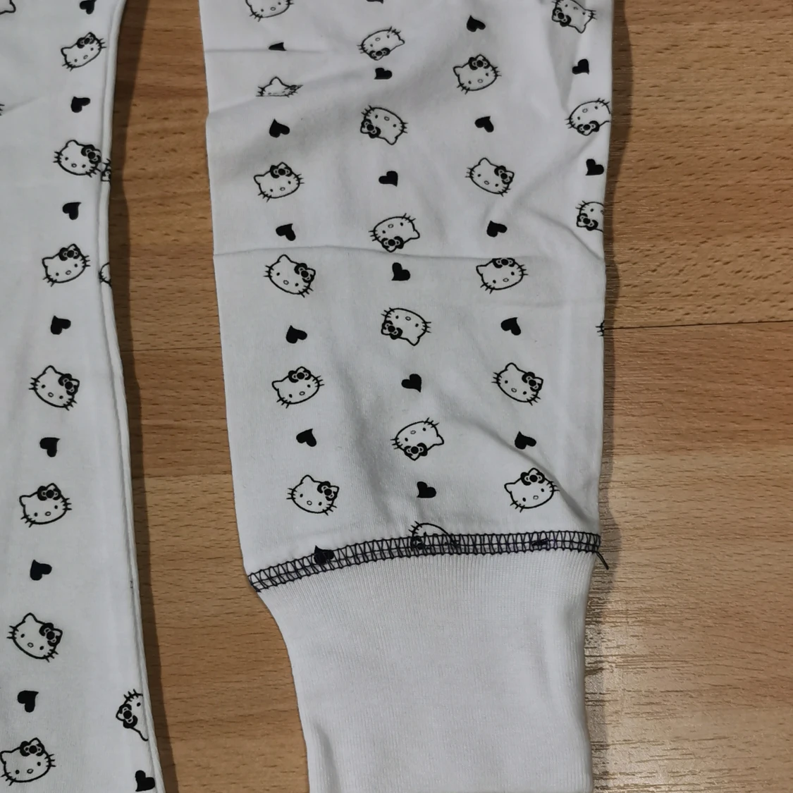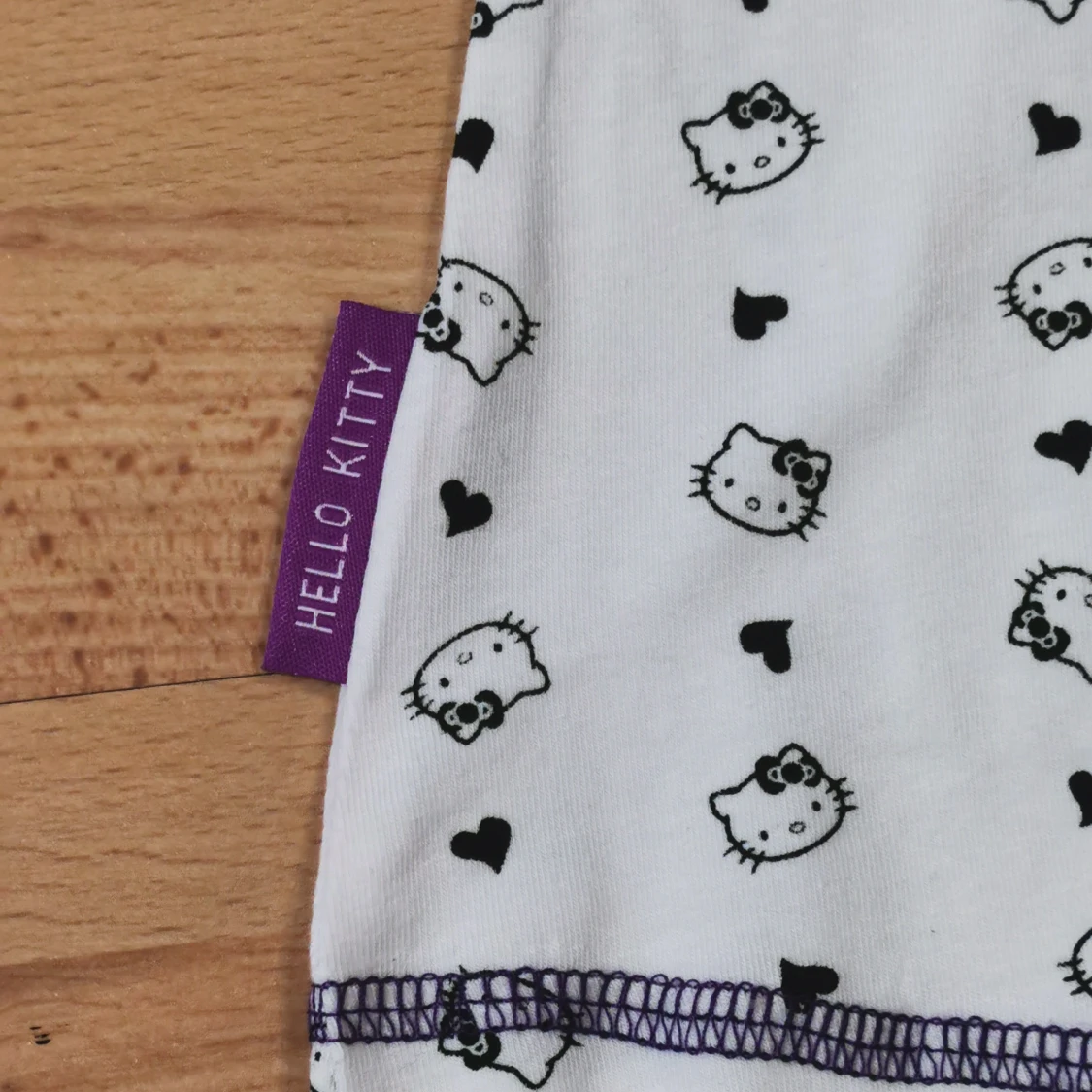 Supersöt vit långärmad sovplagg från Hello Kitty med svart Hello Kitty- och hjärtmönster över hela plagget. Sovplagg har v-ringning med svarta detaljer och knappar framtill. Tillverkad i mjuk bomull med lite stretch för extra komfort.