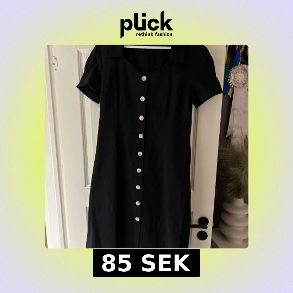 Säljer denna svarta klänning med fina vit/beiga knappar. Helt ny, aldrig använd, prislappen kvar❤️