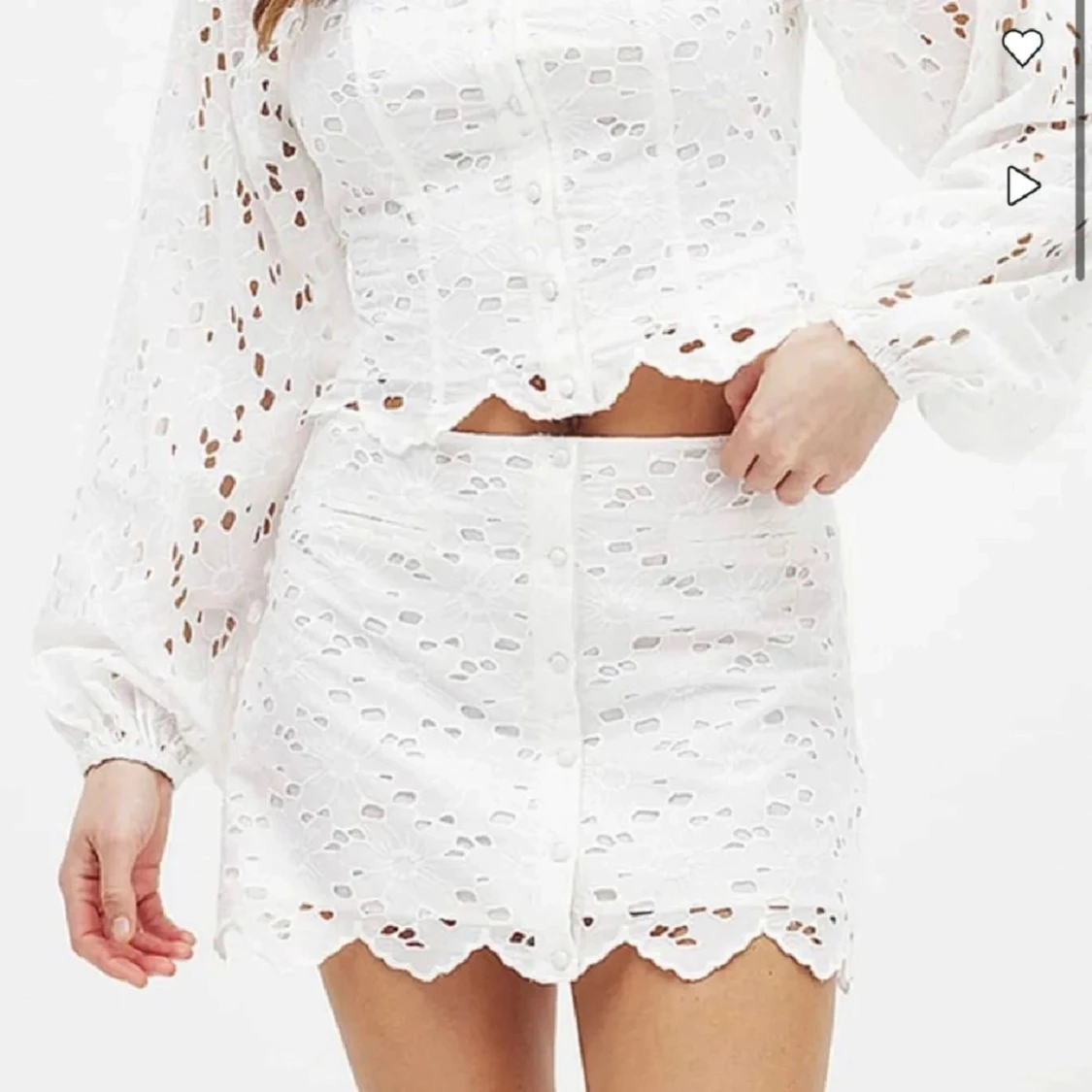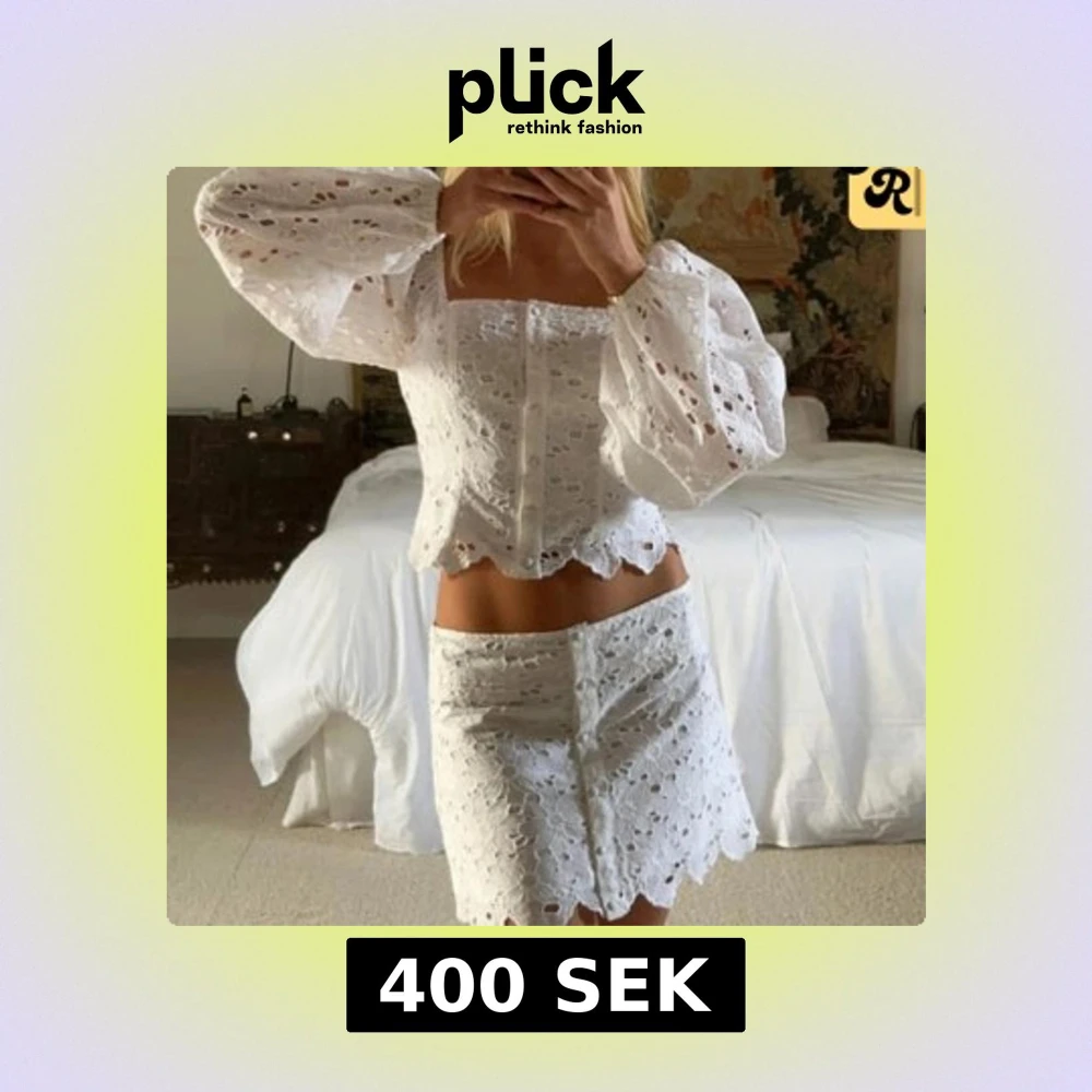 Superfin vitt sett med broderade blommor och puffiga långärmar. Passar helt perfekt till sommaren!! Aldrig använt och har lapparna kvar🥰nypris för båda delar är 899 kr💞