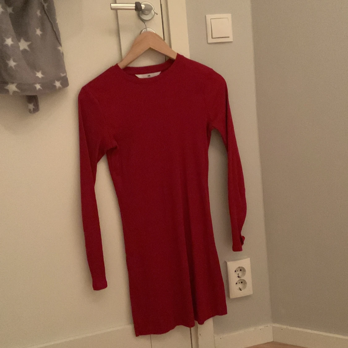 En röd ribbad klänning, endast använd en gång. Säljs för att jag aldrig använder den