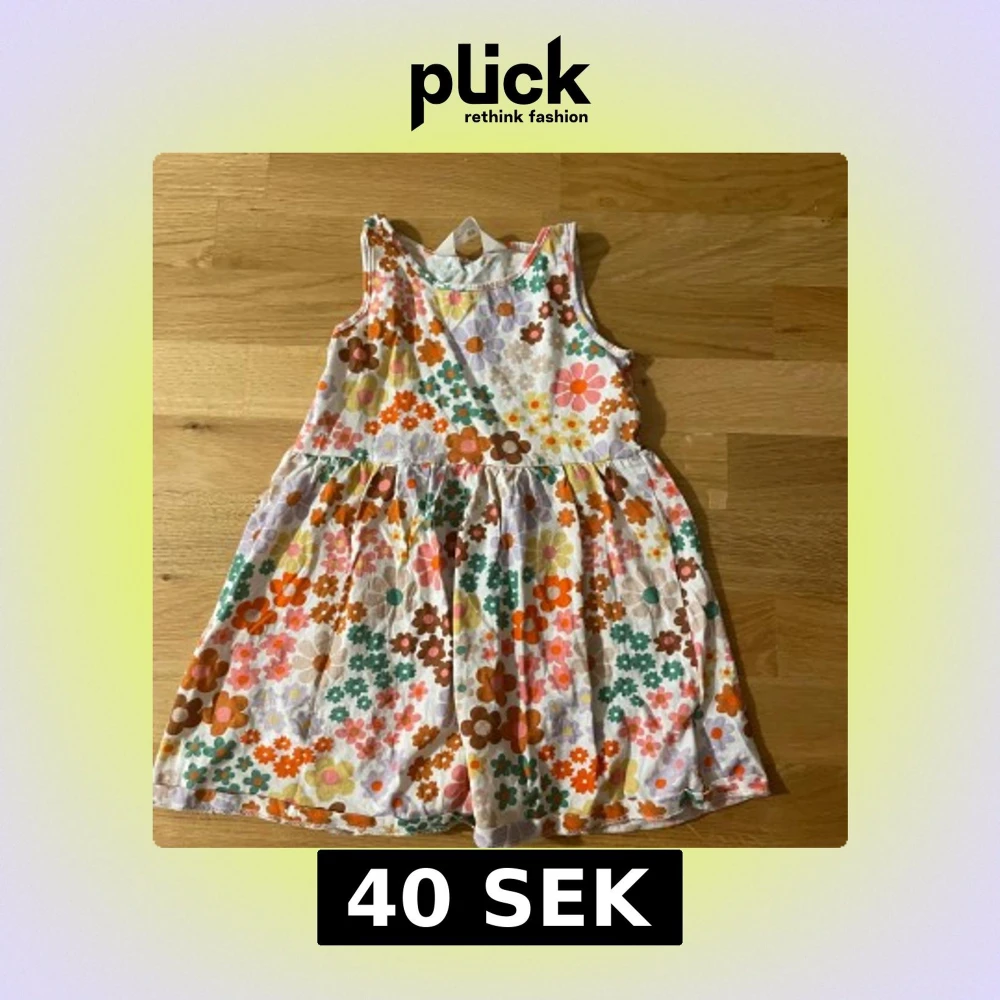 Supersöt ärmlös klänning från H&M med färgglatt blommönster i orange, grönt, brunt, gult och rosa på vit botten. Mjuk bomull, rund hals och utställd kjol. Perfekt för varma dagar och ger en härlig retrovibe!
