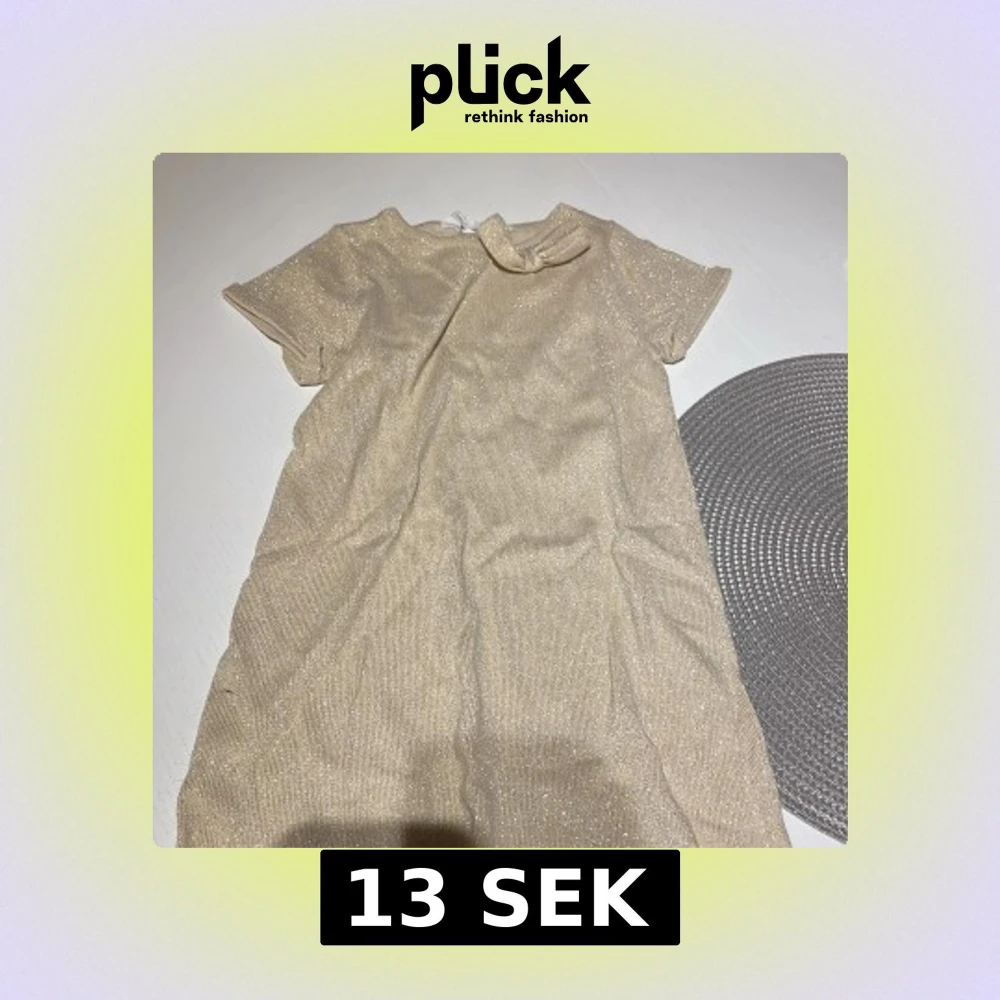 Superfin glittrig beige kortklänning från H&M med korta ärmar och en söt rosett vid halsen. Perfekt för dig som vill sticka ut lite extra med en glittrig look. Mjuk och bekväm, passar till många tillfällen.