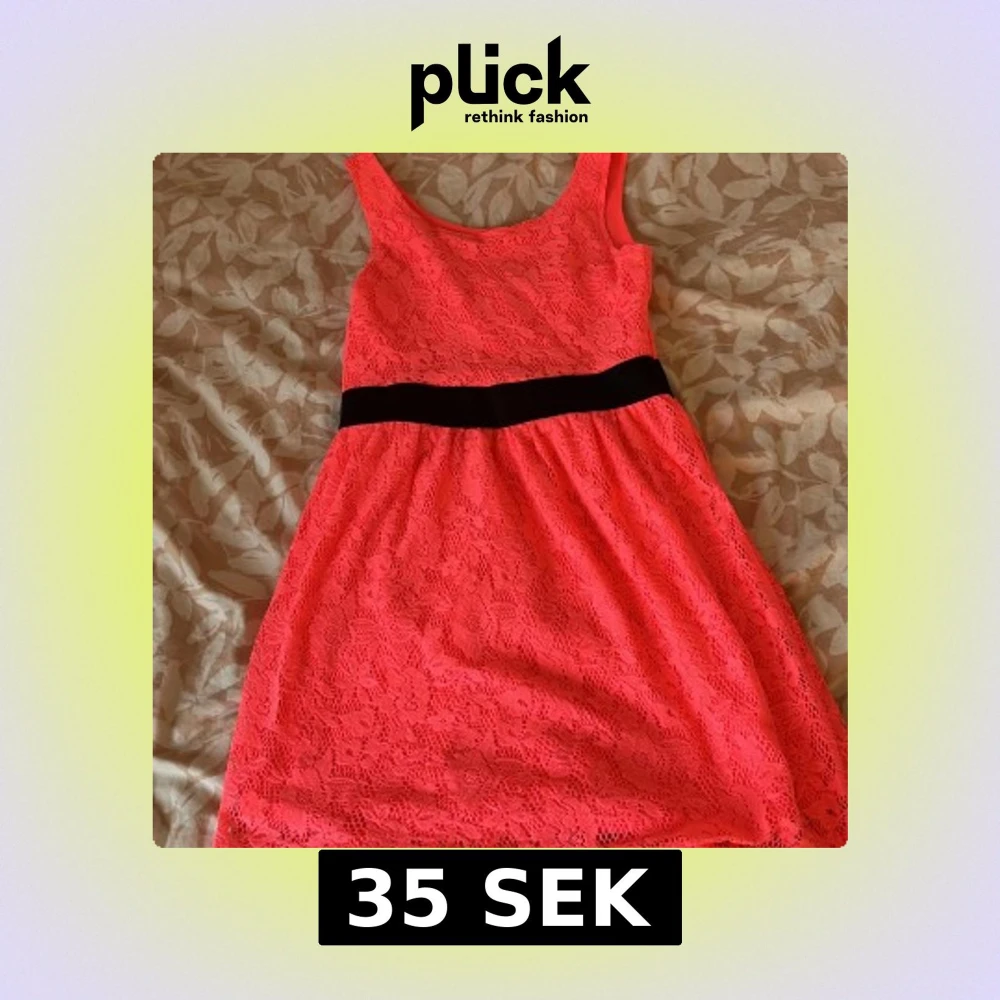 Säljer en söt korallfärgad klänning från H&M med spetsdetaljer och svart midjeband. Klänningen är ärmlös och har en rund halsringning. 💗