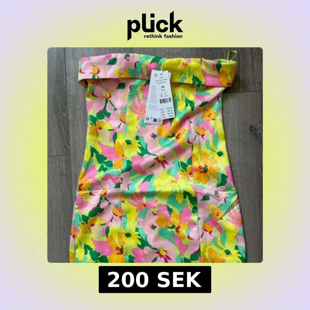 Färgstark axelbandslös kortklänning från Gina med blommigt mönster i rosa, gul, grön och inslag av orange. Klänningen har en snygg omlottkant upptill och är gjord i glansig satin som känns lyxig mot huden. Perfekt för sommarens alla tillfällen!