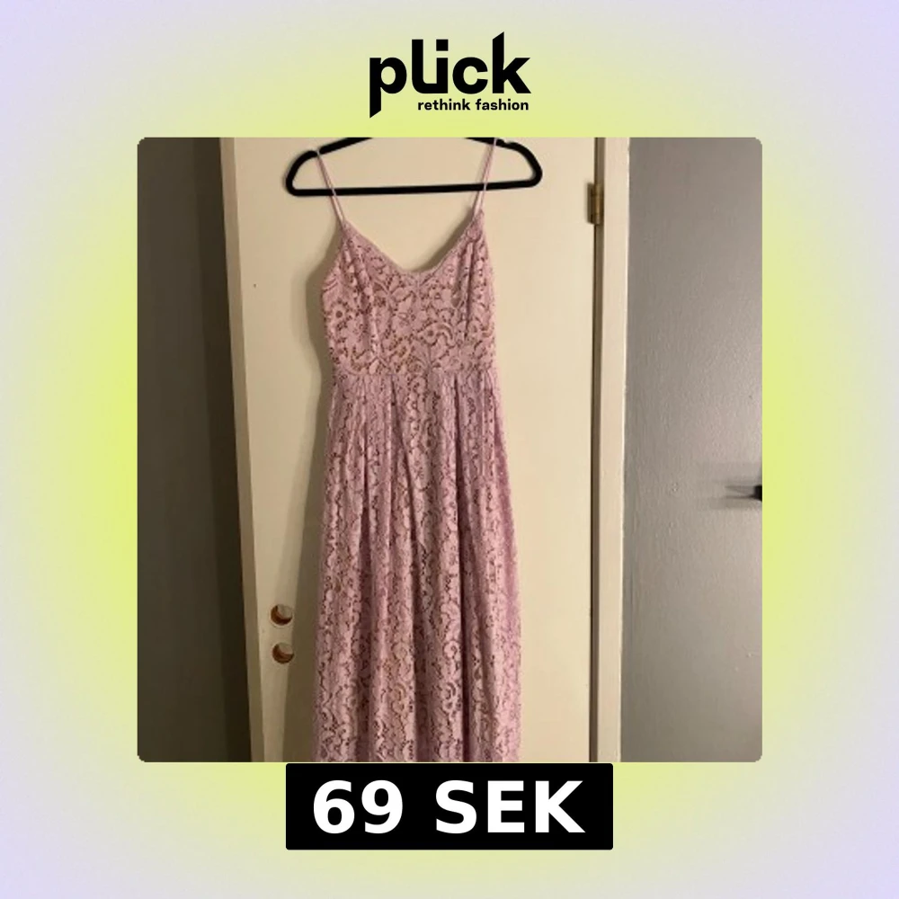 Superfin långklänning i ljuslila med blommigt spetsmönster och smala axelband. Klänningen har en v-ringad urringning och är ärmlös, vilket ger en romantisk och feminin vibe. Materialet är spets med ett mjukt innerfoder för extra komfort.💕