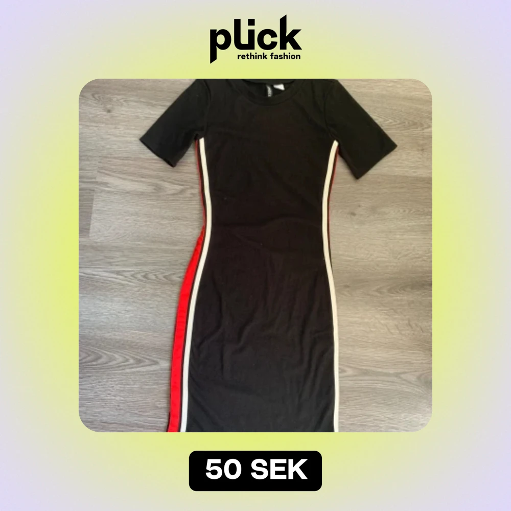 Bodycon klänning som aldrig använts, den har röd och vit sträck på båda sidorna.