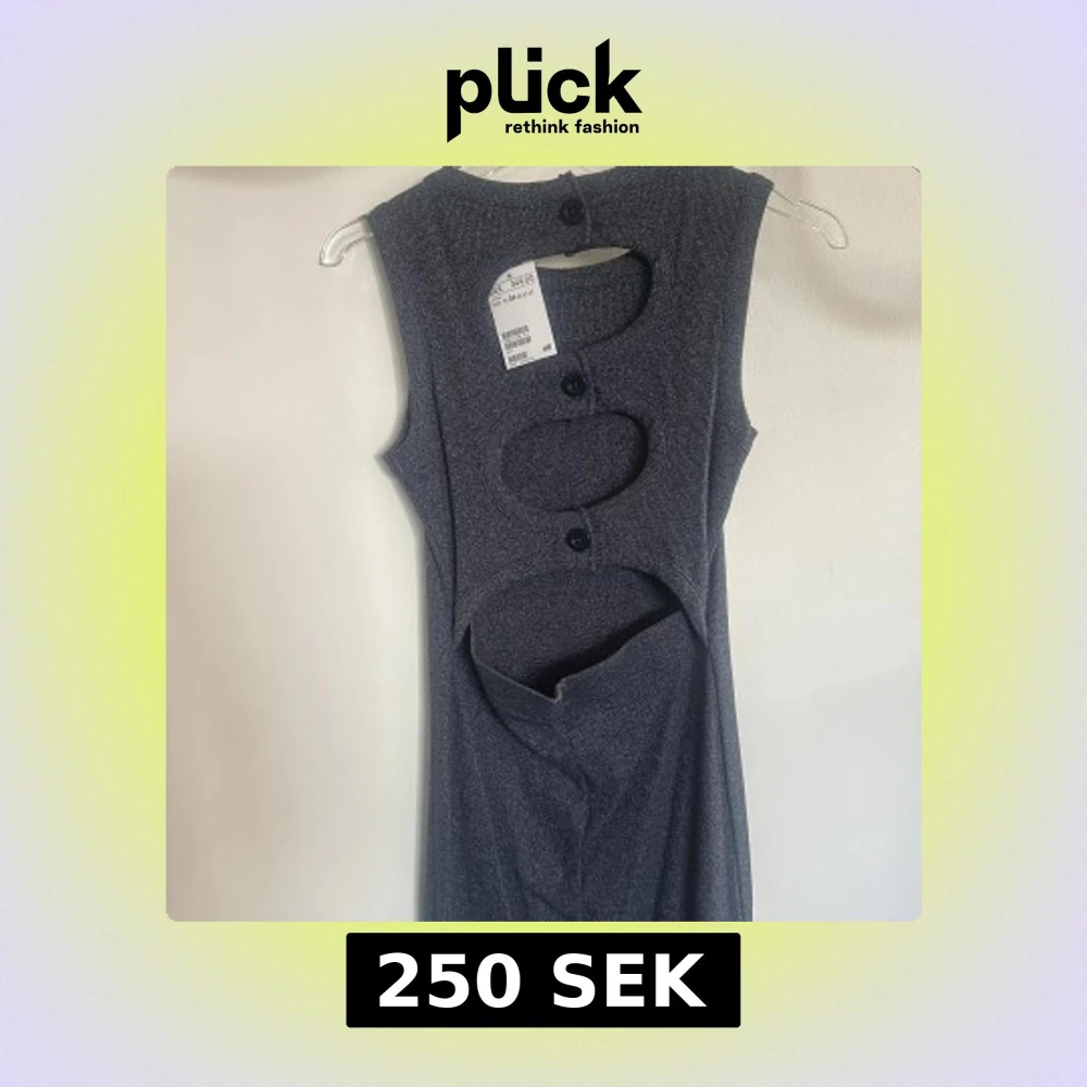 Säljer en grå ärmlös långklänning från H&M med ribbad struktur. Klänningen har flera cut out-detaljer och knappar i ryggen som ger en unik look. Perfekt för dig som vill sticka ut med en modern och trendig stil. Tycker ser ut som jeans effekt 😍