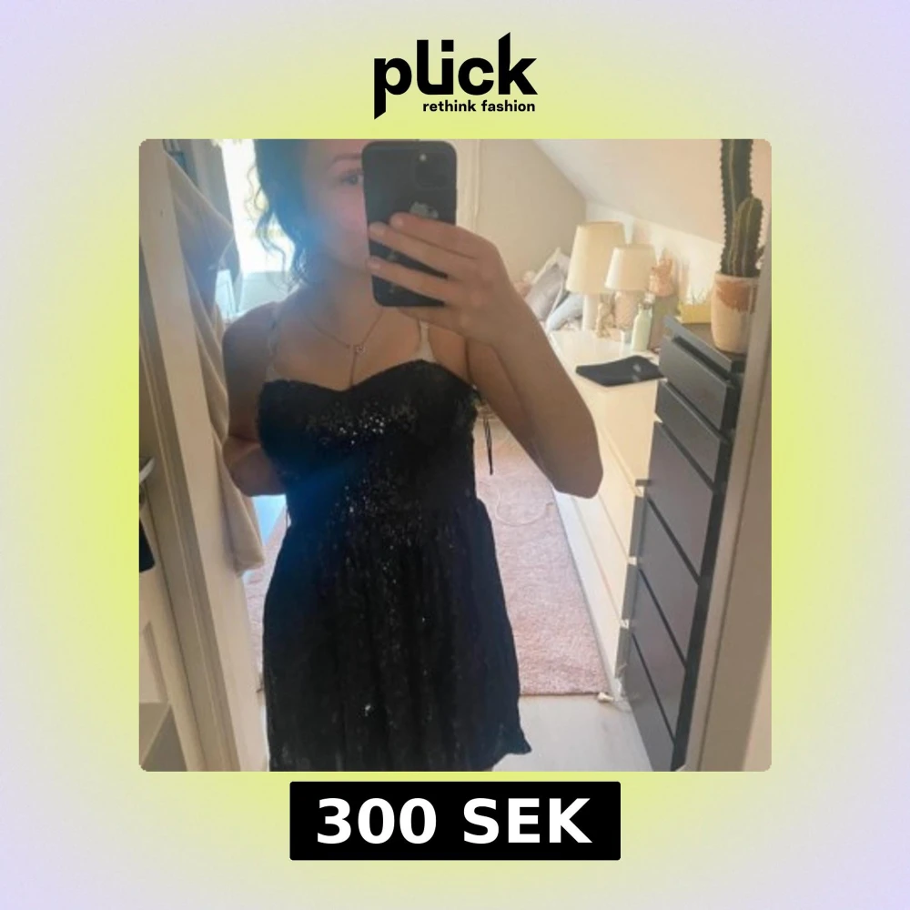 Supersnygg svart kort klänning från H&M med paljetter över hela tyget. Axelbandslös modell med hjärtformad urringning och figurnära överdel. Perfekt för dig som vill sticka ut och glänsa! Säljes pga garderobsrensning.