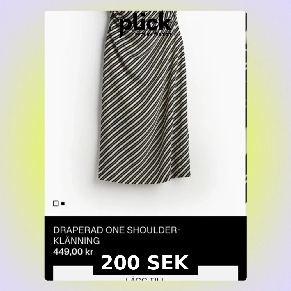 Trendig one shoulder-modell med snygg drapering Svart/vit randig – väldigt smickrande passform Längd: knälång Skick: helt ny, aldrig använd Nypris: 449kr Mitt pris: 200kr Perfekt till fest, middag eller sommarevent