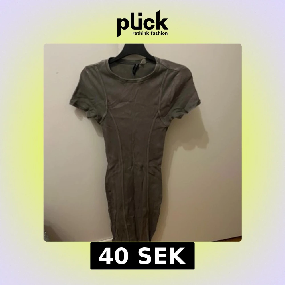 Säljer en grå tight kortklänning från H&M med korta ärmar och rund hals. Klänningen har markerade sömmar framtill som ger en snygg siluett och är gjord i ett stretchigt bomullsmaterial. Perfekt att styla med sneakers eller boots.Liten i storleken. Ok, skick men något blekt