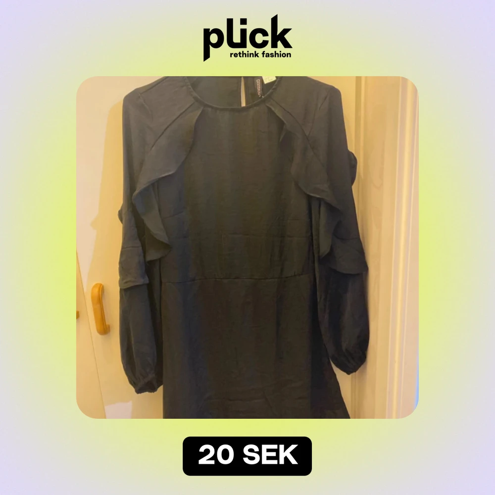 Säljer en elegant svart klänning från H&M i storlek 38. Klänningen har långa ärmar och fina volangdetaljer längs axlarna. Perfekt för höst- och vinterfester. Materialet känns mjukt och bekvämt. Passar både till vardags och festligare tillfällen.