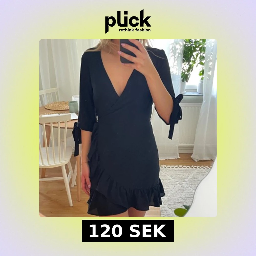 Superfin svart omlottklänning med knyte på armarna. Stretchig. Strl 38💕