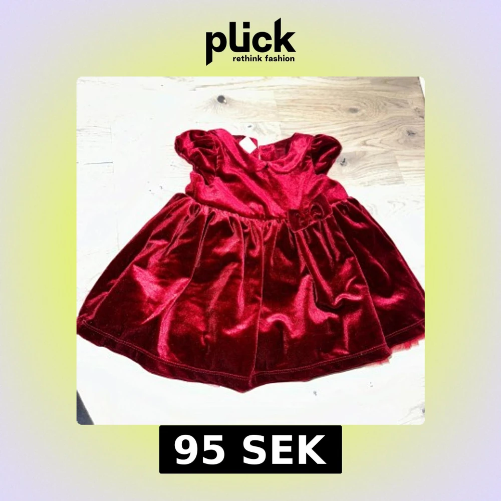 En söt, röd klänning med sammetsliknande yta. Den har en krage och puffärmar, samt en liten rosett på midjan. Klänningen har en utställd kjol med tyll underkjol och knäpps med knappar i ryggen. Supersöt vinröd klänning i mjuk sammet från H&M med puffärmar, rund krage och dekorativ rosett i midjan. Klänningen har knappar i ryggen och ett lager av tyll under kjolen för extra volym. Perfekt för dig som gillar lite extra glam. Gör alla tillfällen - jul - födelsedag 🎁- fest 🎈