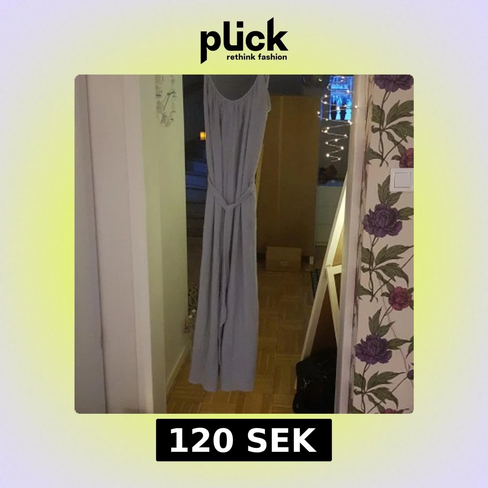 Elegant blågrå byxklänning från H&M med ett knytband i midjan. Klänningen har en v-ringad design och är ärmlös, vilket ger en stilren och luftig look. Perfekt för sommarens festligheter.