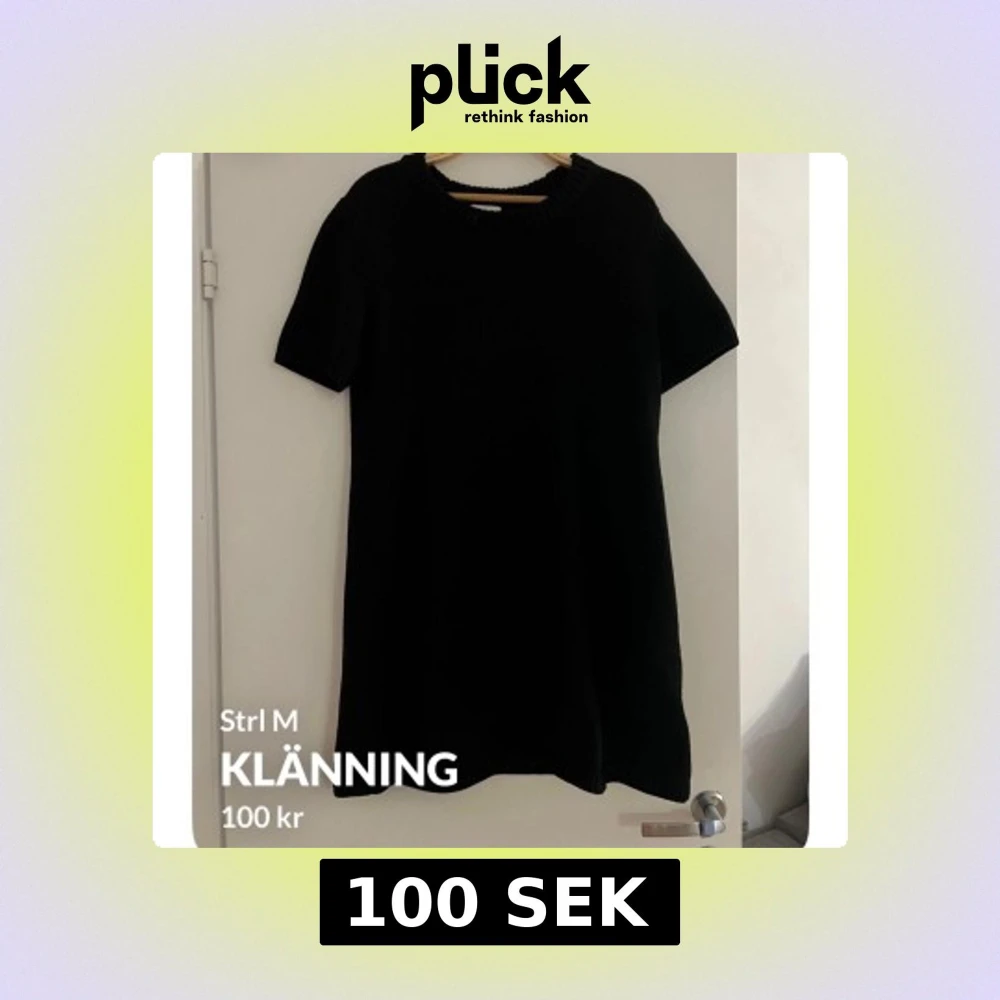 Säljer en stilren svart klänning från H&M i storlek M. Klänningen har korta ärmar och en enkel design som passar perfekt för olika tillfällen. Perfekt basplagg att ha i garderoben!