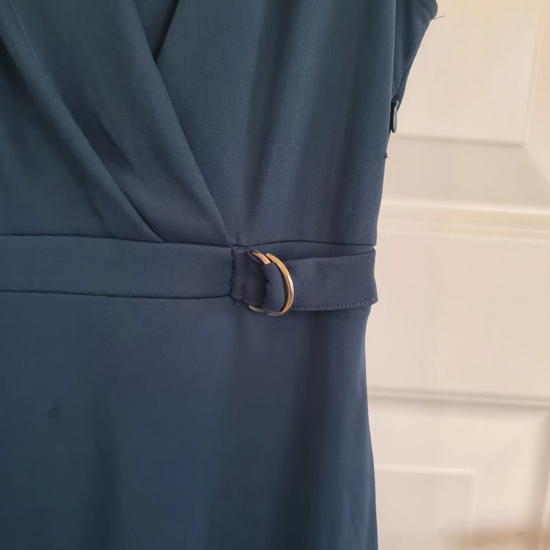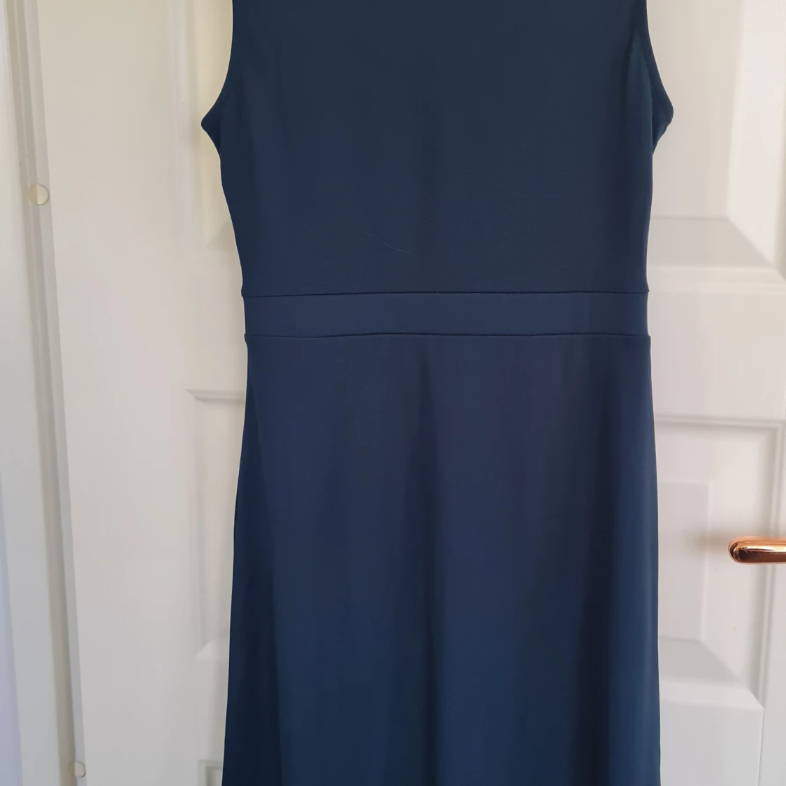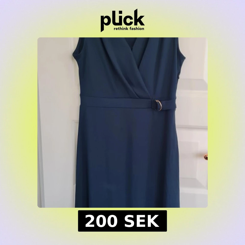 Säljer en marinblå ärmlös klänning från H&M i omlottmodell med bälte i midjan. Klänningen har en v-ringad överdel och är tillverkad i ett mjukt, lätt material som ger en snygg siluett. Perfekt för dig som gillar stilrena och klassiska plagg.