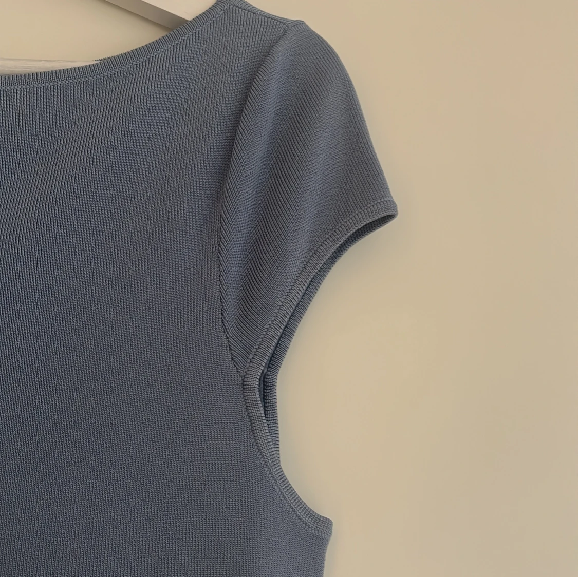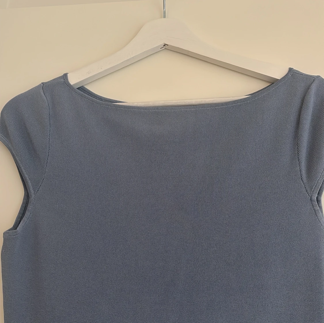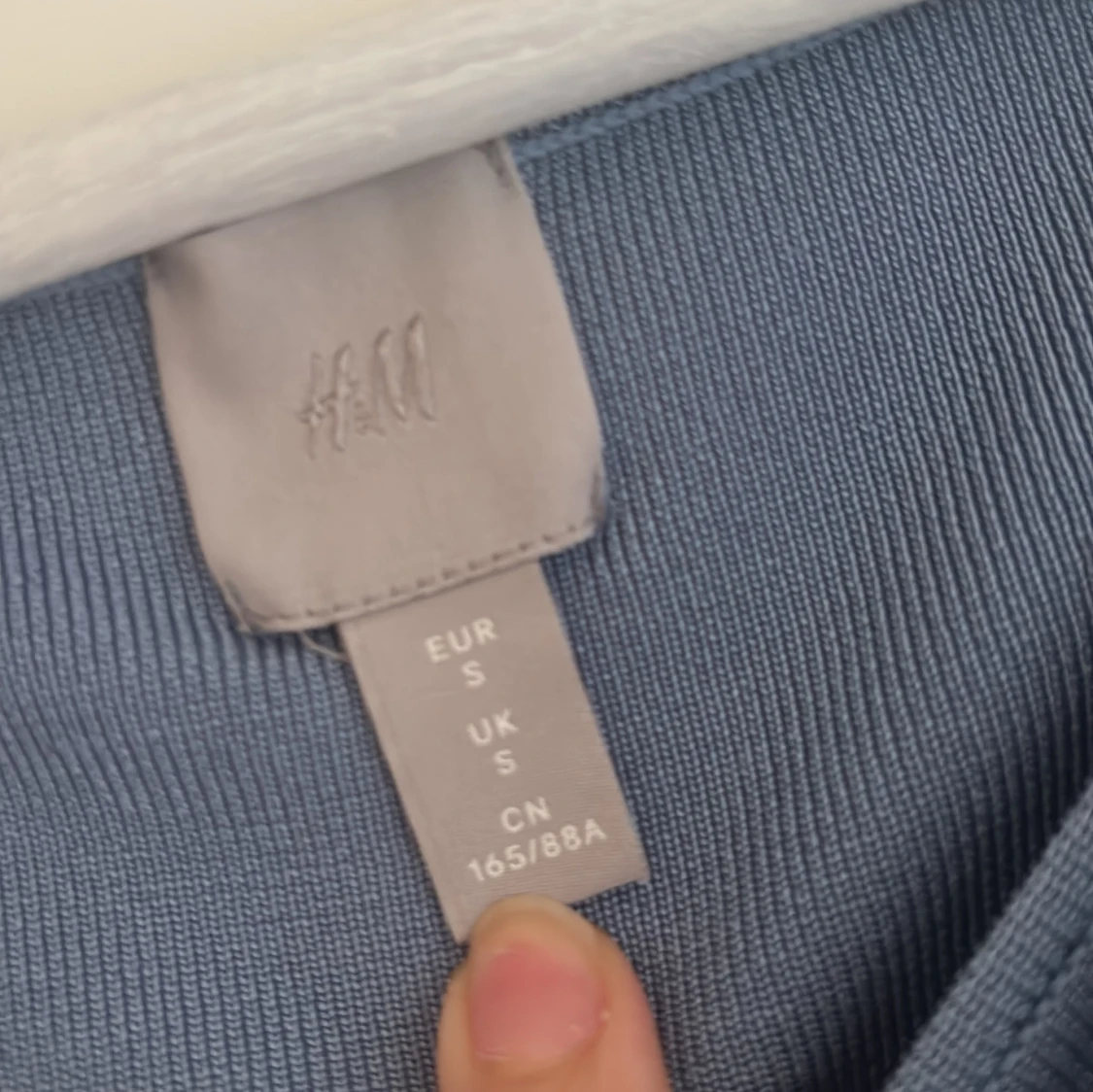 Säljer en ljusblå klänning från H&M med rund halsringning och korta ärmar. Klänningen har en utställd kjol med dekorativa håldetaljer och vågig kant nertill. Perfekt för vår och sommar!