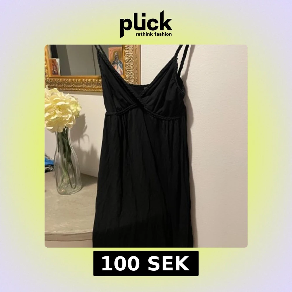 Snygg svart klänning från H&M med smala axelband och v-ringad design. Perfekt för en stilren look. Klänningen har en enkel och elegant stil som passar till många tillfällen.