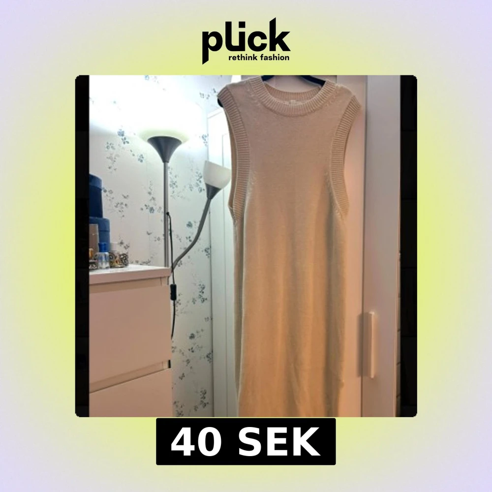 Snygg beige ärmlös klänning från H&M i stickat material. Perfekt för lager-på-lager-stil eller som den är. Den har en rund halsringning och en rak passform som ger en stilren look.