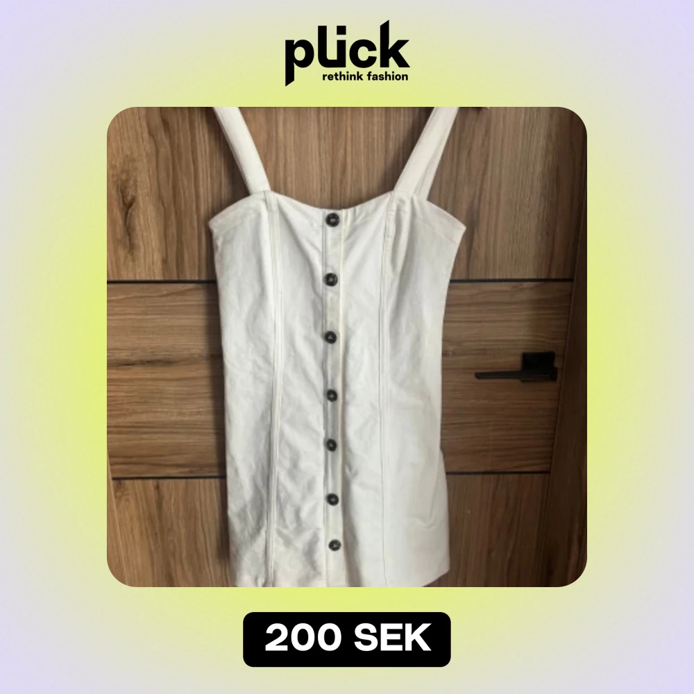 Säljer en vit klänning från H&M i storlek S. Klänningen har knappar framtill och breda axelband. Perfekt för sommarens alla tillfällen! 🌞