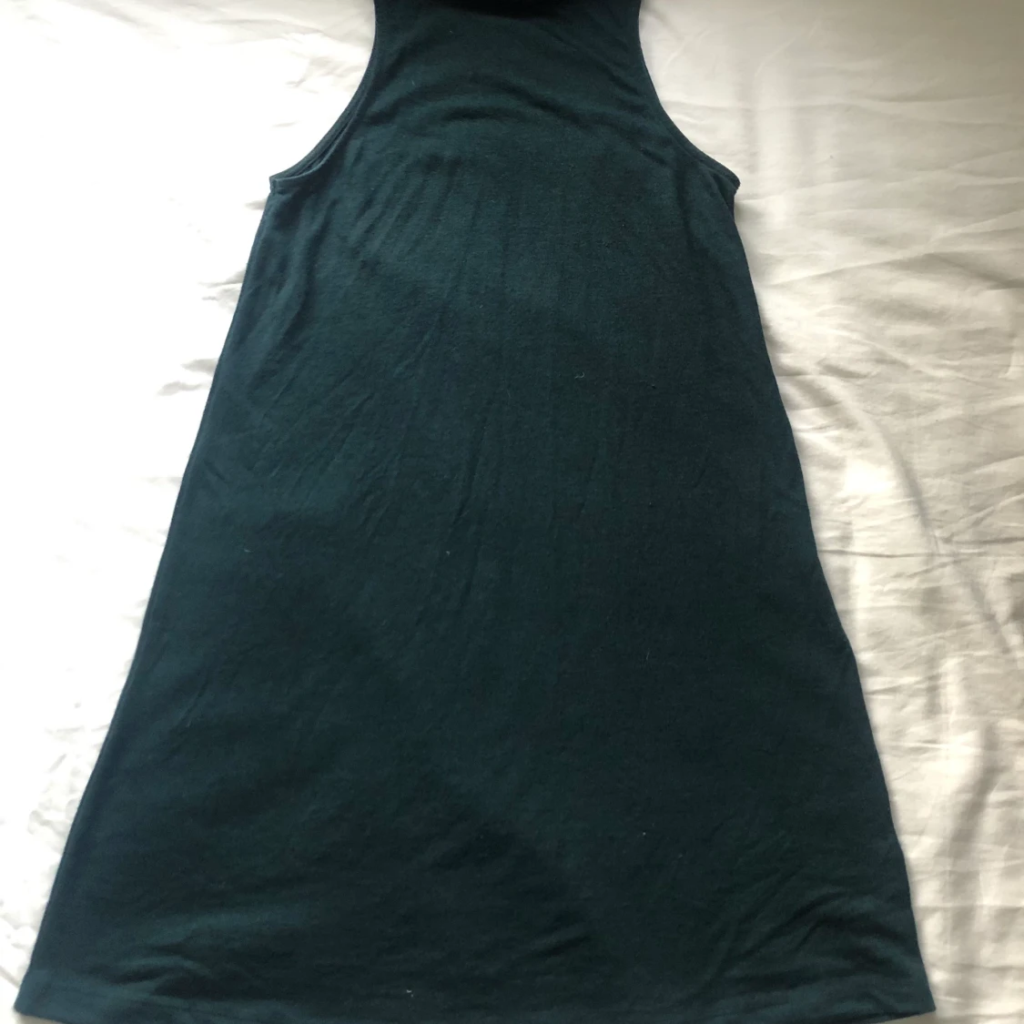 Enkel, snygg och flowig klänning. Har halterneck och inga ärmar. Riktigt skön! Färgen blir mer rättvis på andra bilden. Det är grön