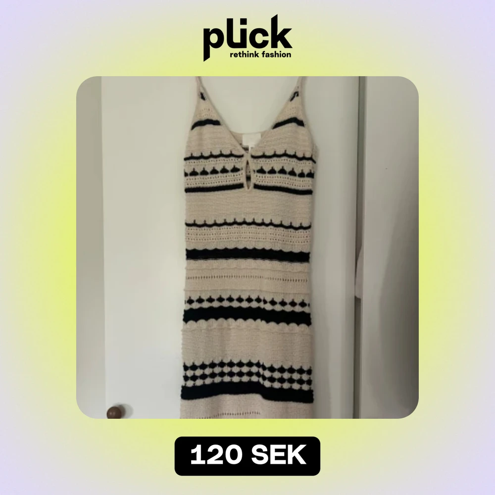 Virkad HM klänning. Använd två gånger. Klänningen har en öppning vi bröstet och en mindre volang ner till.