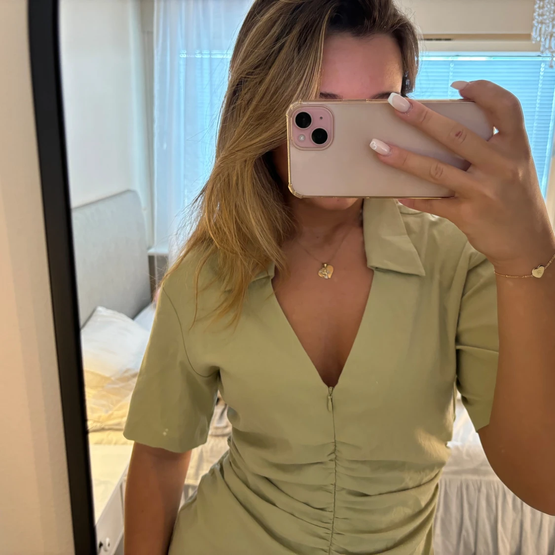 Ljusgrön/pastell grön klänning, sitter åt så fint i midjan