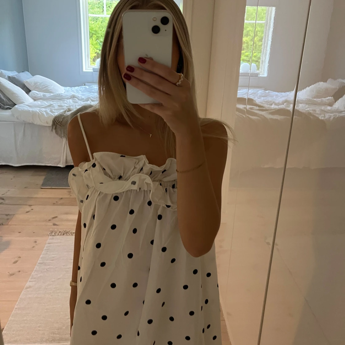 Säljer denna fina klänning som inte kommer till användning🤍är i storlek xs men passar även s!