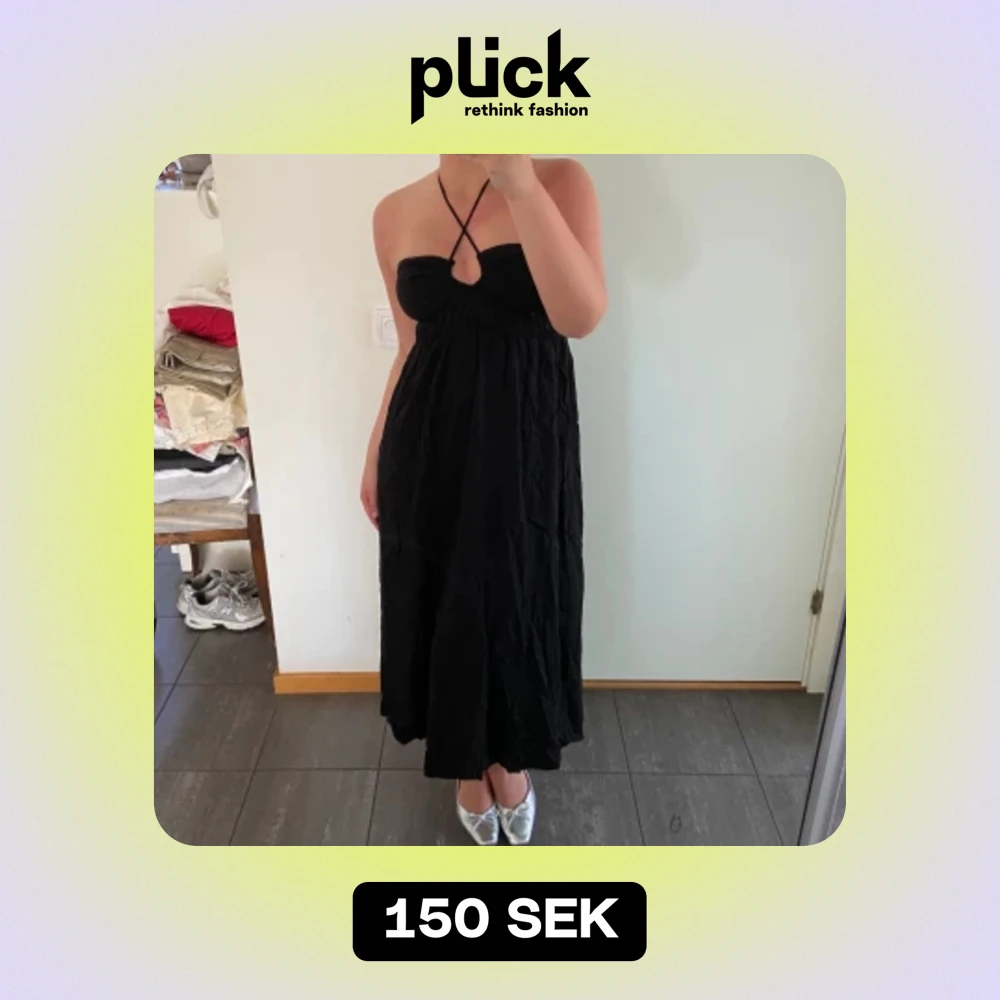 Säljer denna svarta midiklänning från H&M i storlek S/36. Pris kan diskuteras - kom med prisförslag eller köp direkt för 120kr