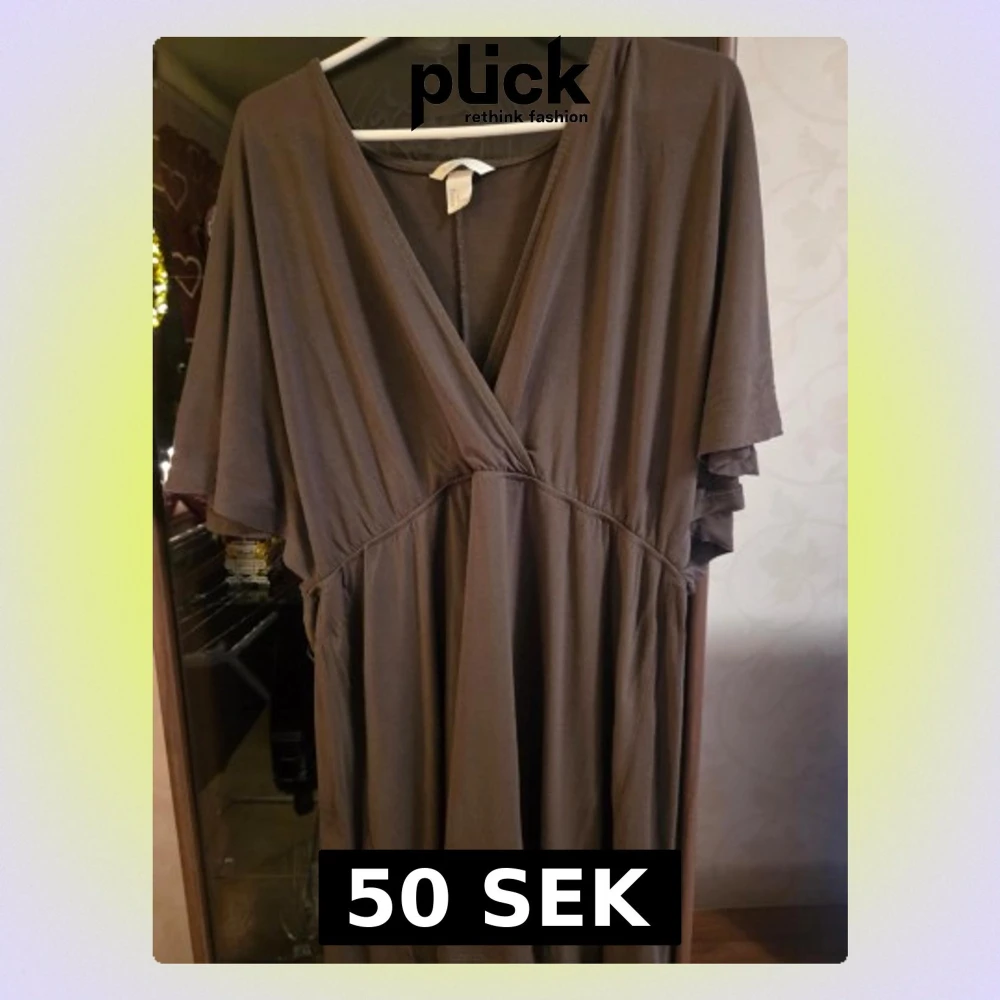 Mjuk brun klänning i bomull med omlott-design och djup v-ringning. Klänningen har korta ärmar och ett avslappnat fall som ger en loose passform. Perfekt för dig som gillar enkel och stilren look.Färg: Khaki!.