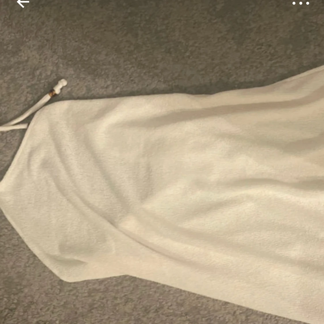 Säljer en vit kort omlottklänning från Hm L. Klänningen har tunna axelband med knyt och är tillverkad i ett mjukt, frottéliknande material. Perfekt för sommarens varma dagar och har en enkel, stilren look.