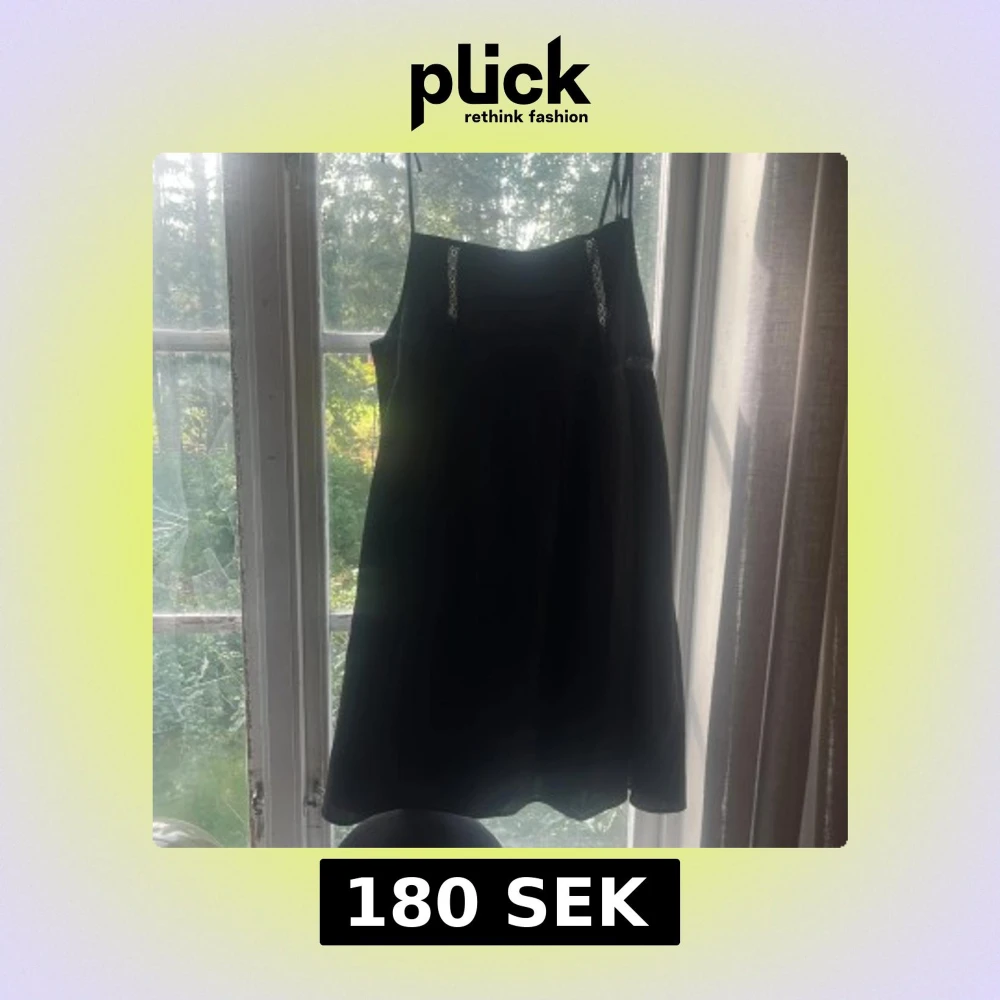 Säljer en svart kort klänning med tunna axelband som knyts upptill. Klänningen har fina spetsdetaljer framtill och ett subtilt broderat mönster på bröstet. Passar dig som gillar stilrena plagg med lite extra detaljer. Köpt för 250, aldrig använd