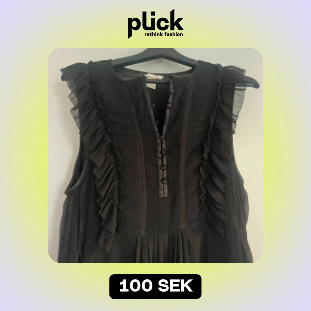 Säljer en superfin svart klänning med volangdetaljer och knappar framtill. Den är ärmlös och har en luftig passform som gör den perfekt för både vardag och fest. Klänningen är i ett lätt och bekvämt material, vilket gör den idealisk för sommarens varma dagar.