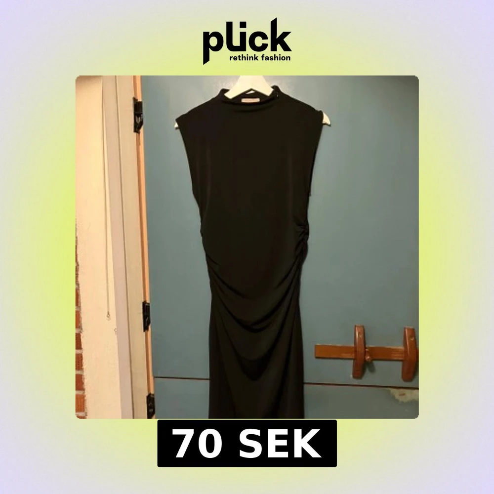 Stilren svart långklänning med hög hals och ärmlös design. Klänningen har snygg drapering längs sidorna som ger en cool siluett. Tillverkad i ett mjukt, stretchigt material som sitter bekvämt och följsamt. Perfekt för dig som gillar minimalistisk och modern stil.