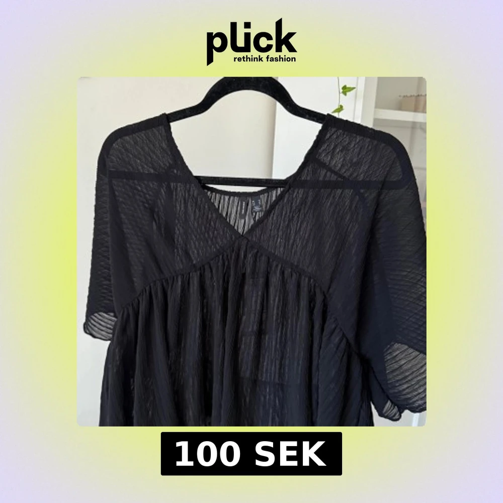 Svart topp från H&M i transparent, lätt och plisserat material. Klänningen har v-ringning, korta ärmar och en luftig, flowy passform. Perfekt för dig som gillar en stilren och edgy look.