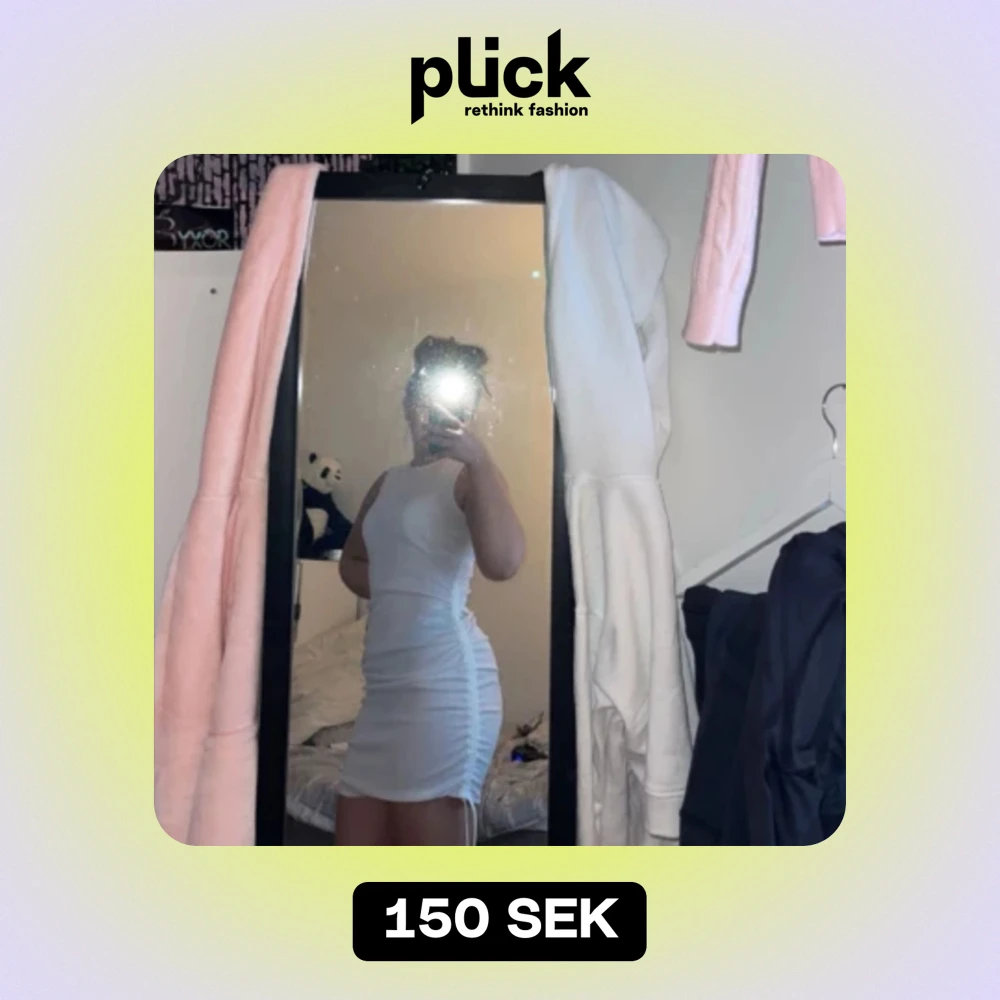 Endast provad. Säljer denna söta klänning med scrunch på sidorna som man kan göra hur långa eller korta man vill. Den är lite genomskinlig så rekommenderar att ha något under ☺️