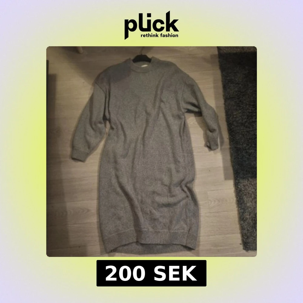 Mysig grå stickad klänning från H&M i storlek M. Klänningen har lång ärm, rund halsringning och är i en rak, avslappnad modell. Perfekt för lager-på-lager och passar till sneakers eller boots.